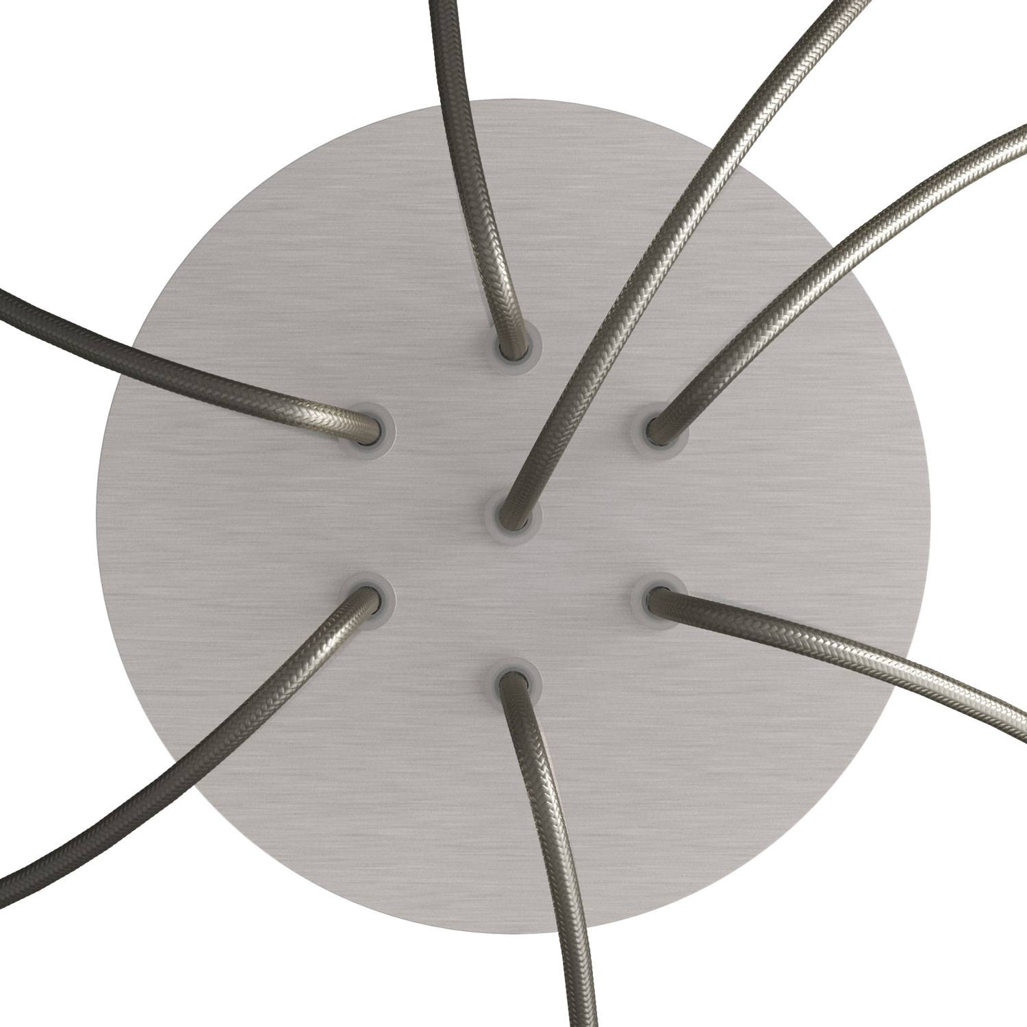 Stropní baldachýn Rose-One kulatý, průměr 200 mm se 6 otvory a 4 bočními otvory – Dibond kartáčovaná ocel