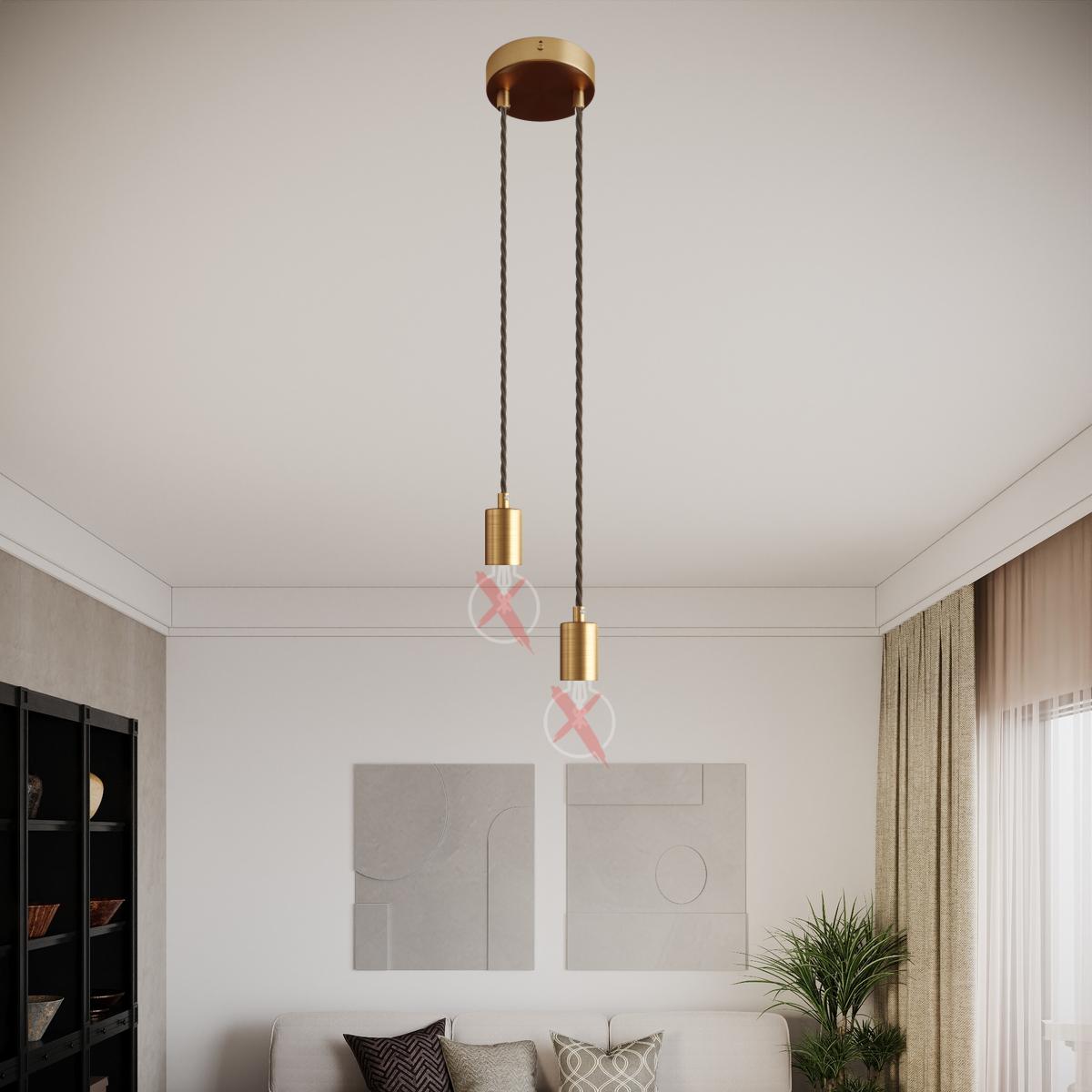 Linke Lampenfassung : 1X [KBM4011OTSTERM] Zylindrisches E27-Lampenfassungs-Kit aus Metall - Cable clamp: Cylindrical, Finish: Brushed bronze